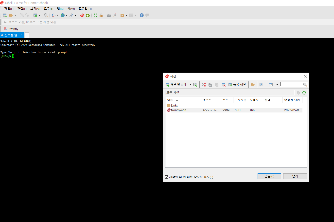 (제가 xshell을 사용합니다 ㅎㅎ)