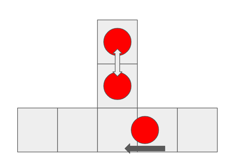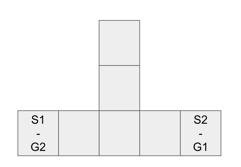 다음과 같은 문제가 있을 때, 충돌이 없는 최단 경로가 계획된다면 두 에이전트 중 하나는 윗 부분에서 기다리게 될 것입니다.