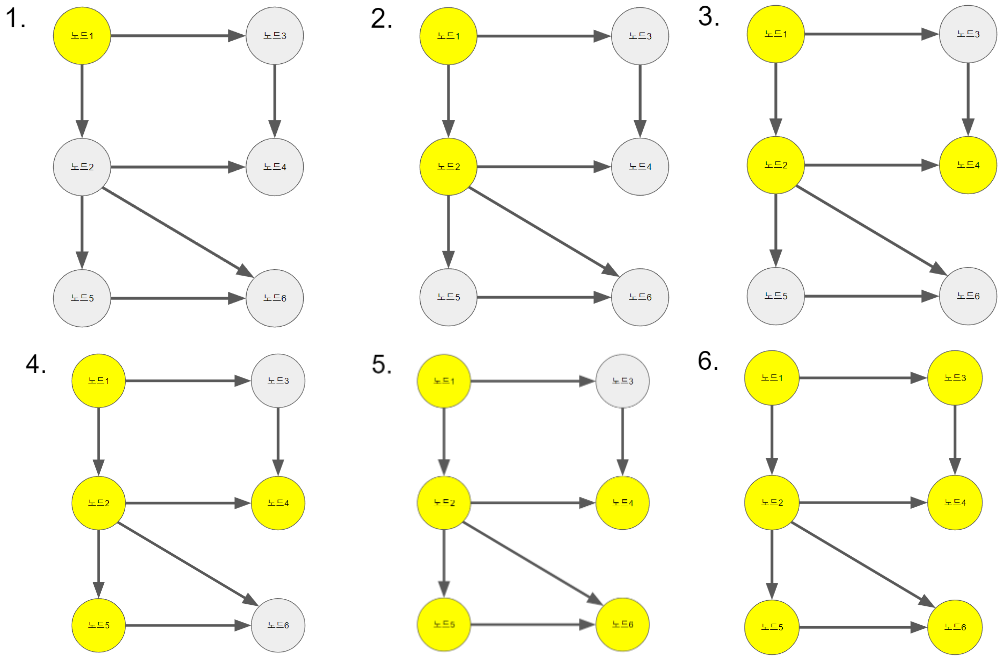 탐색할 노드는 노란색으로 칠했습니다.