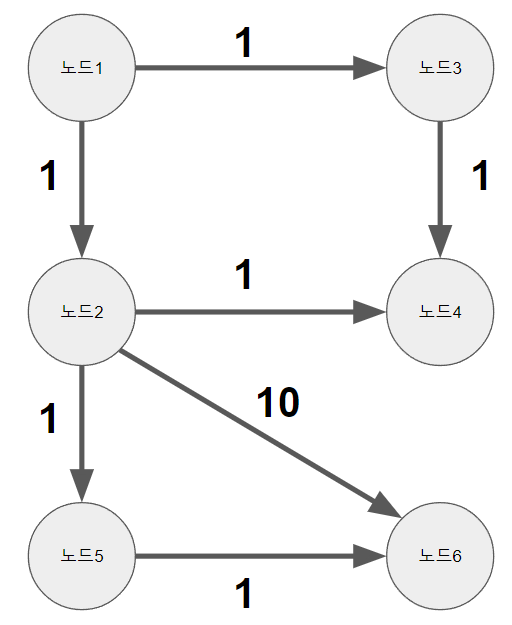 실행 결과를 이용하여 6번 노드로 가장 가까운 경로를 찾아보면 다음과 같은 결과를 얻을 수 있습니다!