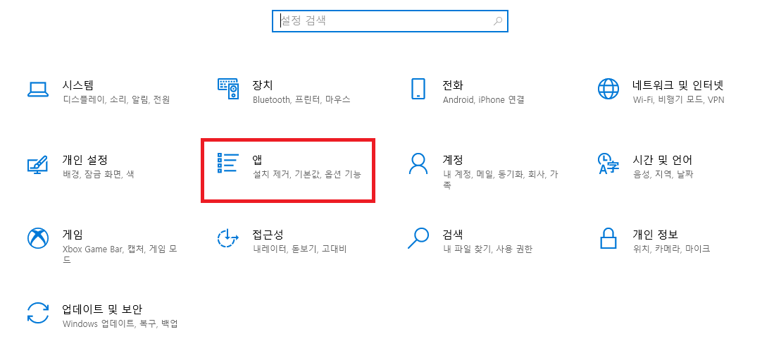 - "설정" 창에서 "앱"을 클릭합니다.