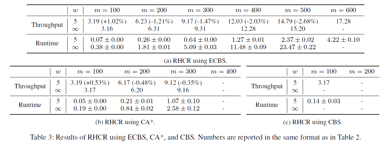 간단하게 RHCR을 적용해도 괜찮은 이유를 생각하자면 1) 계속해서 경로를 재계획한다는 점, 2) 작업이 없어서 멈춰있는 로봇으로 인한 데드락도 없다 정도인데요.