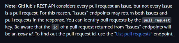 - 링크: https://docs.github.com/en/rest/issues/issues?apiVersion=2022-11-28