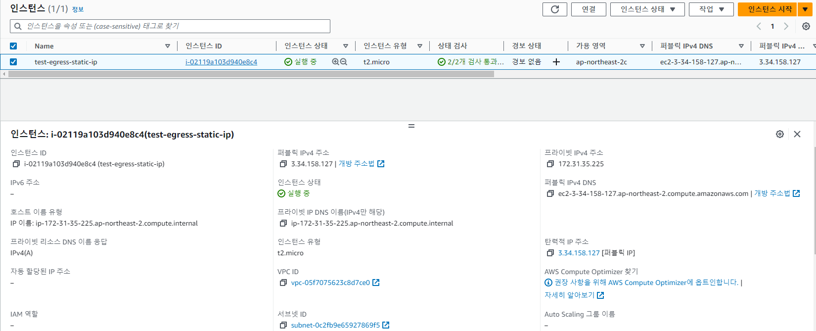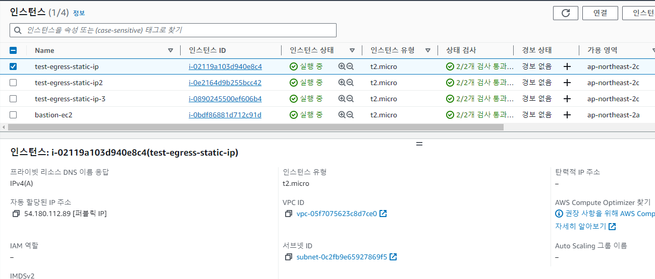 1의 방법으로는 하나의 인스턴스의 egress 트래픽에 대해서만 고정 IP만 할당할 수 있습니다.
