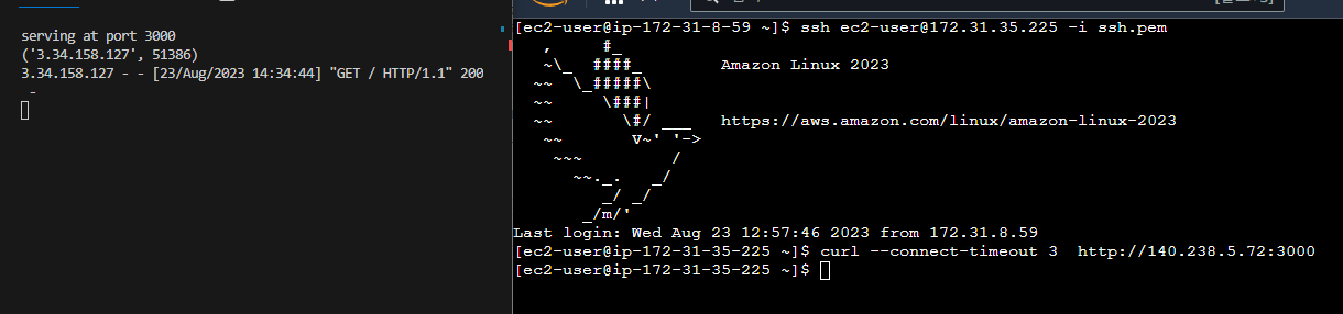 짜잔! 이번에도 3.34.158.127로 출력이 되네요!