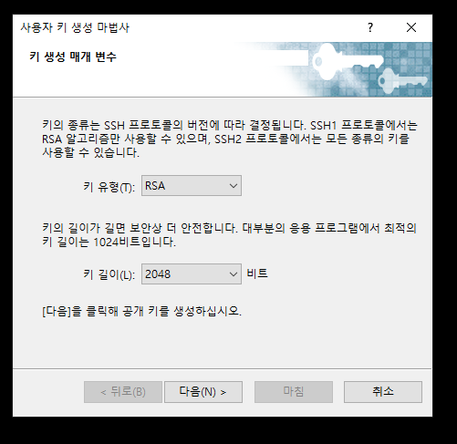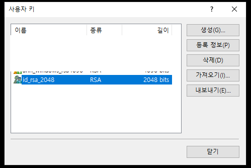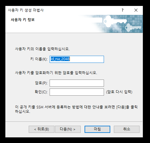 - 사용자 키 생성을 마치면 다음과 같은 창이 뜹니다.