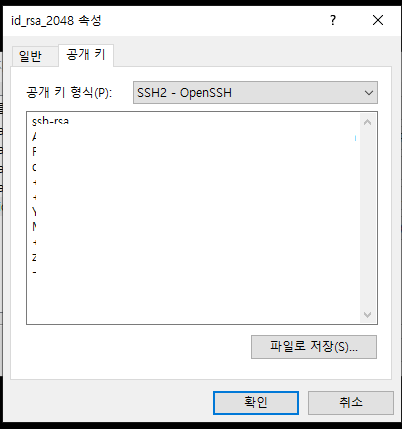 - "파일로 저장"을 클릭하여 공개키 파일을 다운로드합니다.