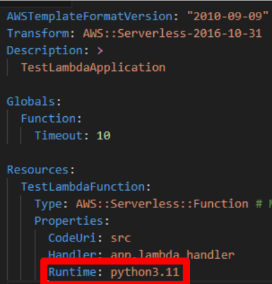 아래 첨부한 이미지와 같이 runtime 필드에 python3.11이라고 작성하기만 하면 되는 것이죠!