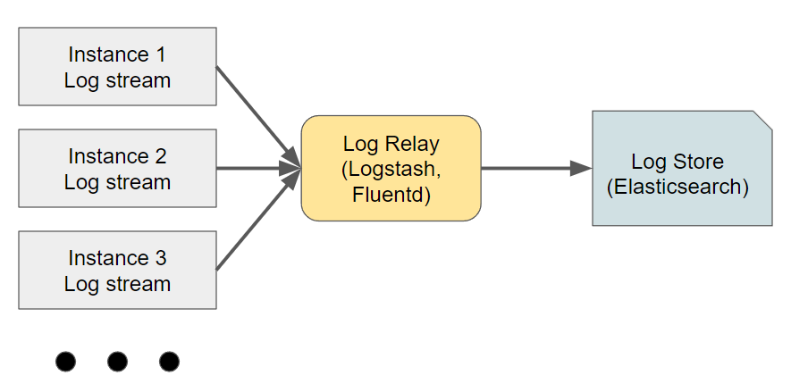 아래 그림과 같이 시스템/서비스를 구성하는 인스턴스들은 Log Relay 레이어로 로그(데이터)를 전달합니다.