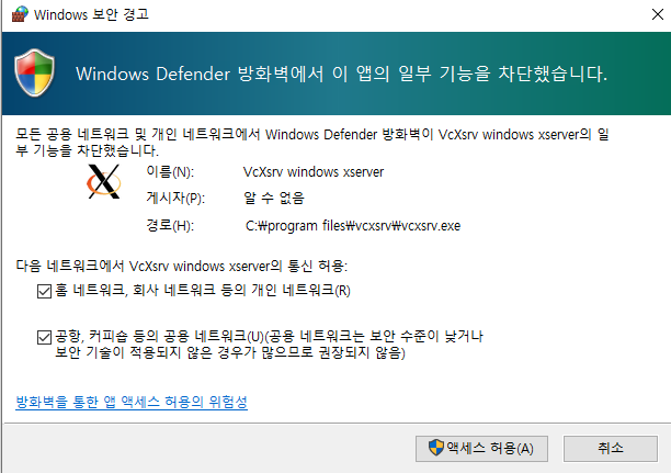 - 별다른 설정을 하지 않았다면 C:\Program Files\VcXsrv 에 설치되었을 거에요!