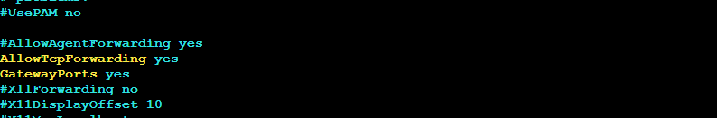 /etc/ssh/sshd_config 파일에서 AllowTcpForwarding, GatewayPorts 옵션을 yes로 바꿔줍니다.