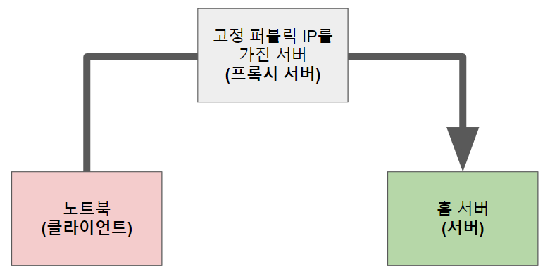 이 때 프록시 서버를 이용해서 홈 서버에 접속할 수 있습니다.