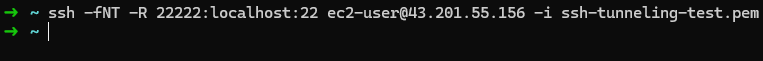 - ssh -fNT -R 22222:localhost:22 user@server.ip -i server.pem