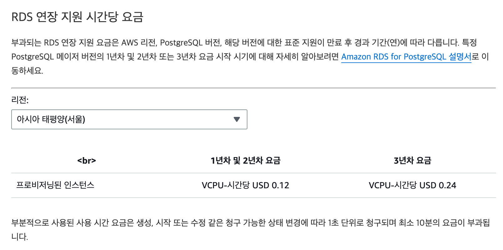 RDS DB 인스턴스를 사용할 때 시간당 비용을 지불하는데 여기에 '연장 지원 비용(extended support cost)'이 추가됩니다.
