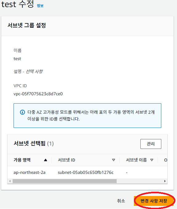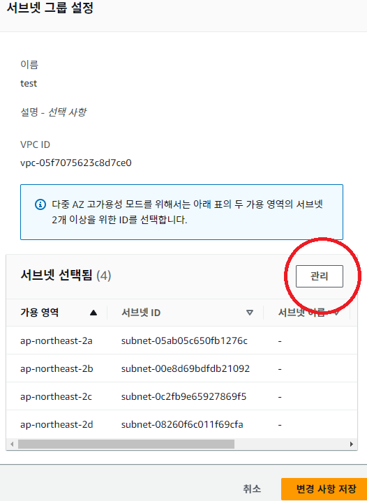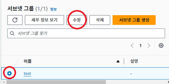 서브넷 그룹을 수정하는 방법은 간단합니다.