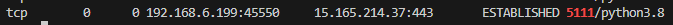 2. netstat -tunp | grep {1에서 확인한 PID} 명령어를 이용해서 어떤 엔드포인트, 포트로 연결했는지 확인할 수 있습니다.