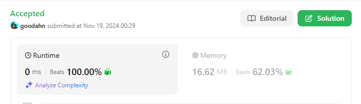 이렇게 하니 runtime 효율성은 확실히 챙겨지더라고요!
