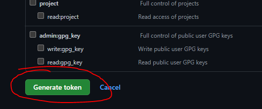5. 페이지 하단의 Generate token 버튼을 클릭하여 토큰을 생성합니다.