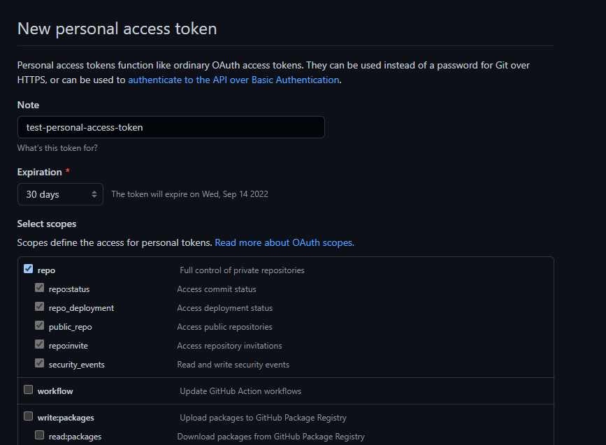 - 저는 적당한 이름으로 test-personal-access-token을 사용했습니다.
