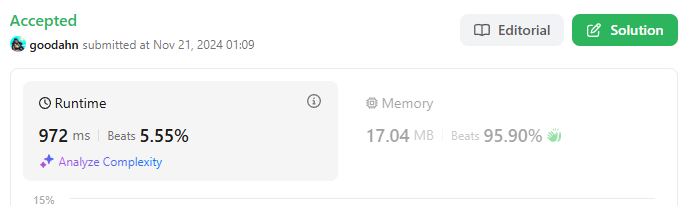 하지만 runtime 효율성이 극악입니다... 다음에는 이걸 개선해봐야겠습니다!