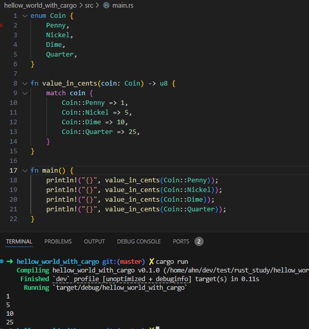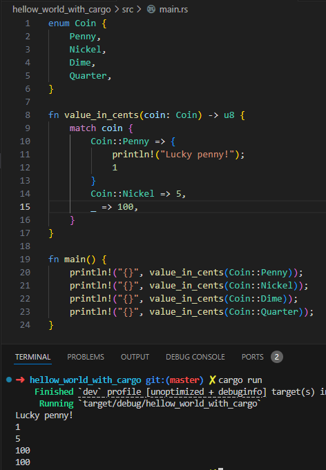 rust의 강점 중 하나인 match를 알아볼 때네요. match는 바로 패턴 매칭을 할 때 사용됩니다.