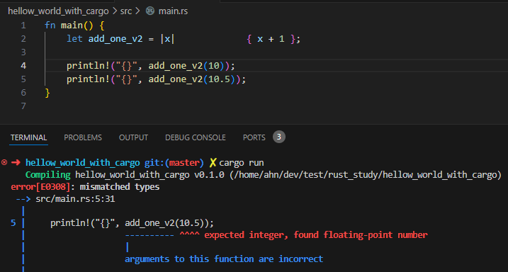 첫째로 타입 검사를 엄밀히 하는 rust는 closure를 어떻게 정의할까요?
