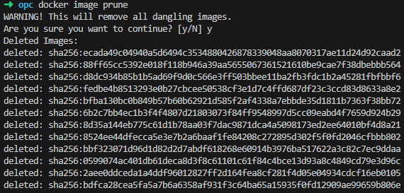 명령어를 실행하면 dangling image들을 삭제할 것인지 물어보는 prompt가 출력됩니다.