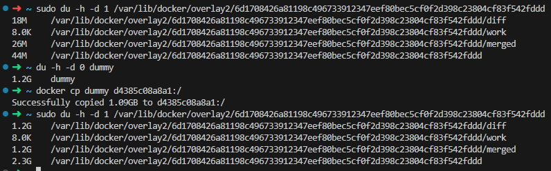 du가 merged 디렉토리의 용량을 upperdir, lowerdir의 용량의 합계로 계산하고 있던 것입니다.