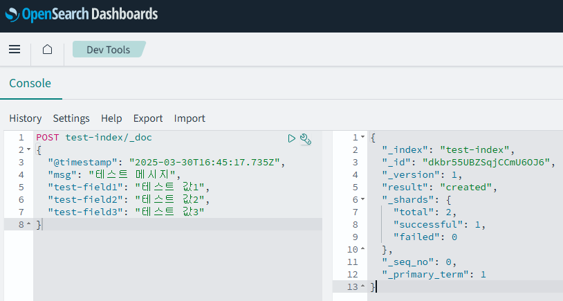 curl 명령어를 이용할 수도 있고, Postman 같은 툴을 사용할 수 있지만 OpenSearch Dev Tools의 사용을 추천드립니다.