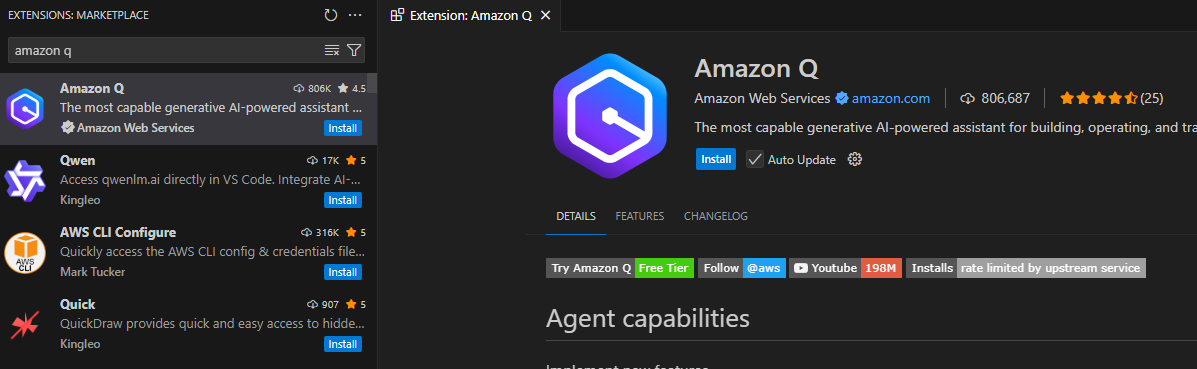 이들보다 Amazon Q Developer의 성능이 좋은지는 아직 모르겠습니다.