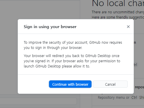 - 브라우저에서 github 로그인을 요구하면 로그인 하셔야 합니다!