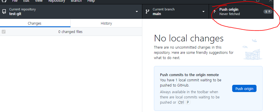 - Push origin이 아니라 Fetch origin으로 바뀌어 있을 거에요!