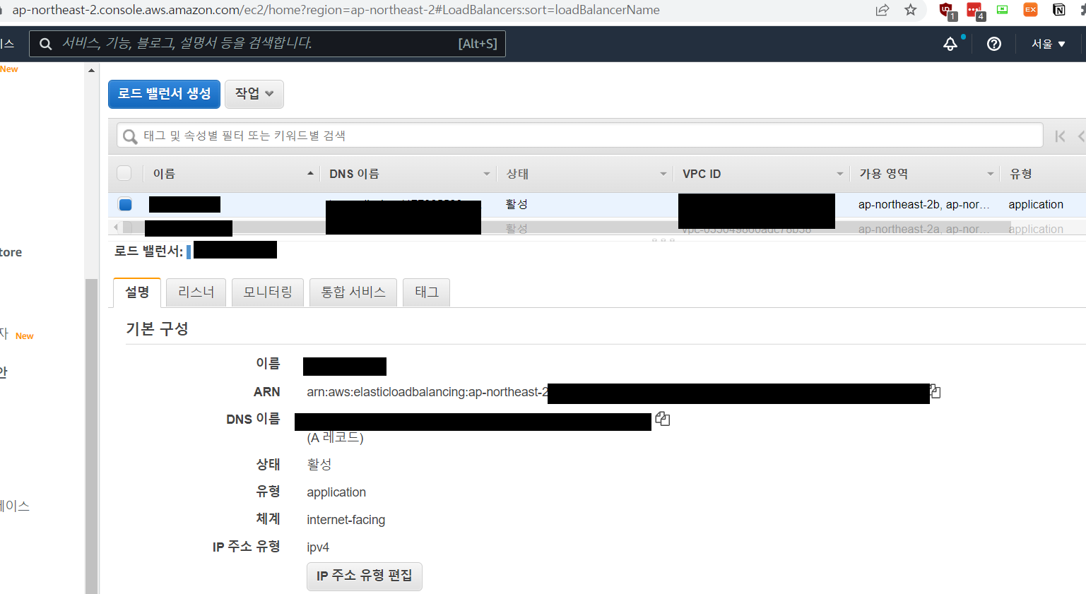 1. EC2 서비스 콘솔 페이지로 들어가서 ELB 탭을 들어가면 생성한 ELB들을 볼 수 있습니다.