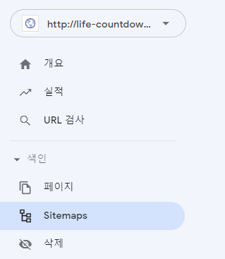 robots.txt 파일과 sitemap.xml을 웹앱에 추가했으면 구글 서치 콘솔에서 Sitemaps 탭을 클릭해줍니다.