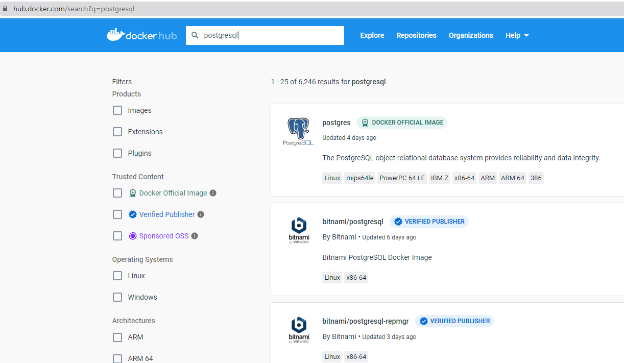 docker image를 찾을 때는 docker hub(https://hub.docker.com/)를 이용하는 것을 추천드립니다.