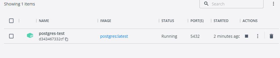 이제 docker desktop의 Containers 탭에서 실행된 postgres 컨테이너를 확인할 수 있습니다.