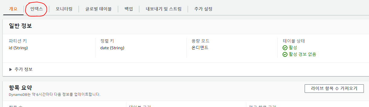 Dynamodb 콘솔 페이지를 이용해서 GSI를 설정하는 방법을 소개드리겠습니다.