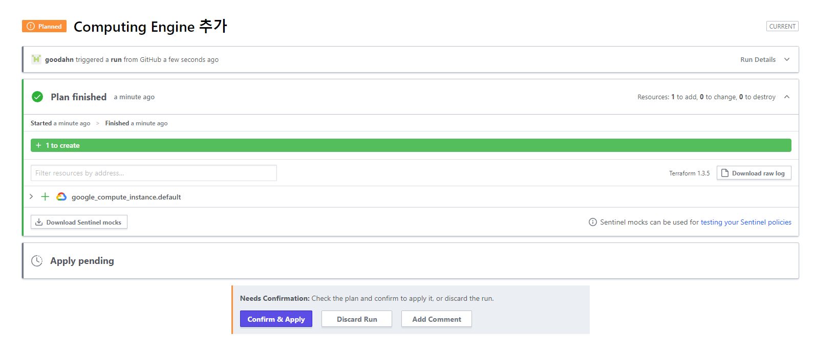 이제 추가한 스크립트를 github에 푸시하면 terraform cloud에서 배포를 진행할 수 있습니다!