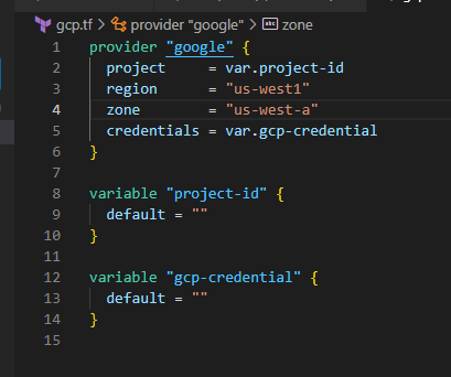 이제 GCP provider 설정 관리하는 terraform 파일을 작성해줍니다.