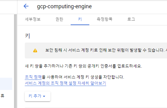 마지막으로 서비스 계정을 생성하고 키를 생성해줘야 합니다!